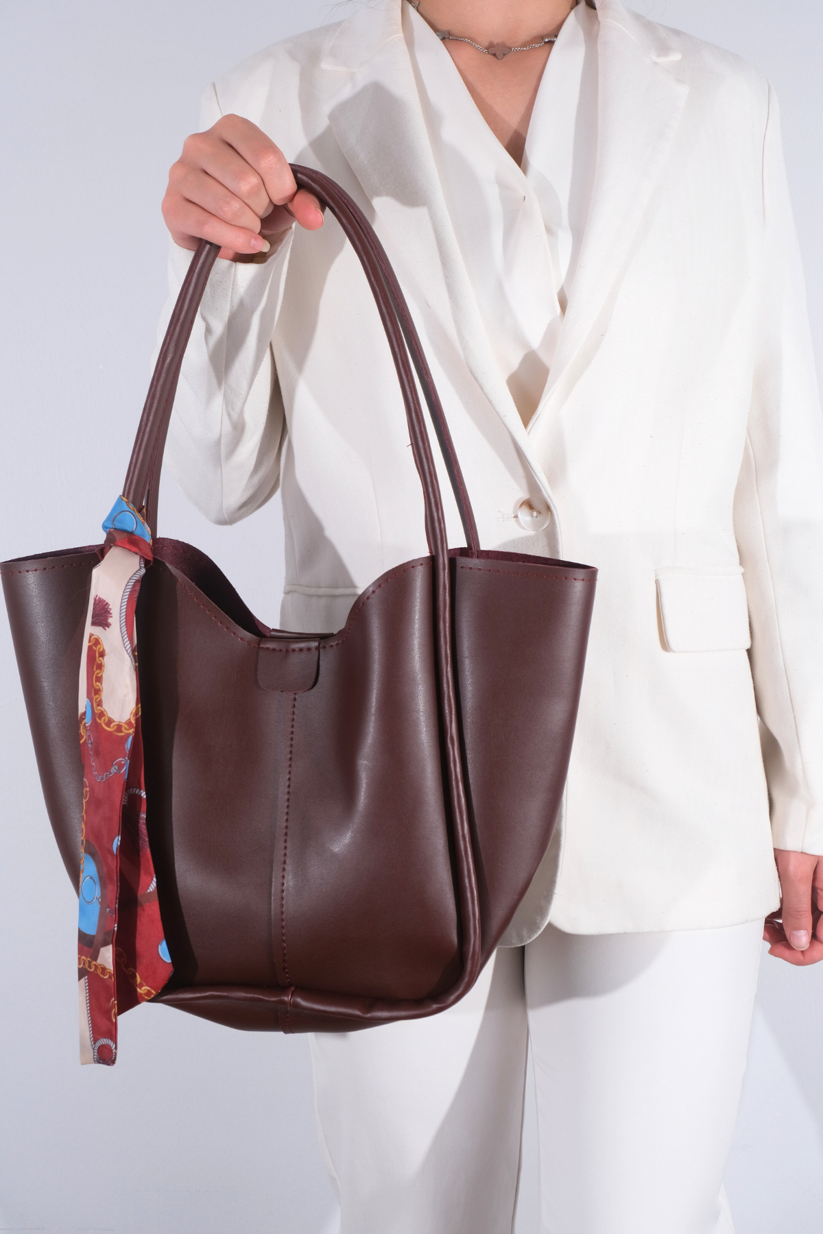 La'Graccio Paris Kadın Golden Fularlı Makyaj Çantalı Omuz Çantası Bordo (Lagraccio2313)