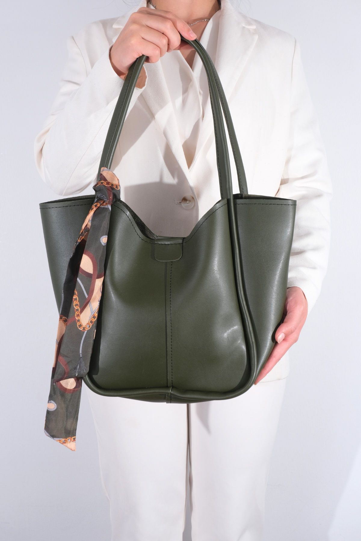 La'Graccio Paris Kadın Golden Fularlı Makyaj Çantalı Omuz Çantası Haki Yeşil (Lagraccio2313)