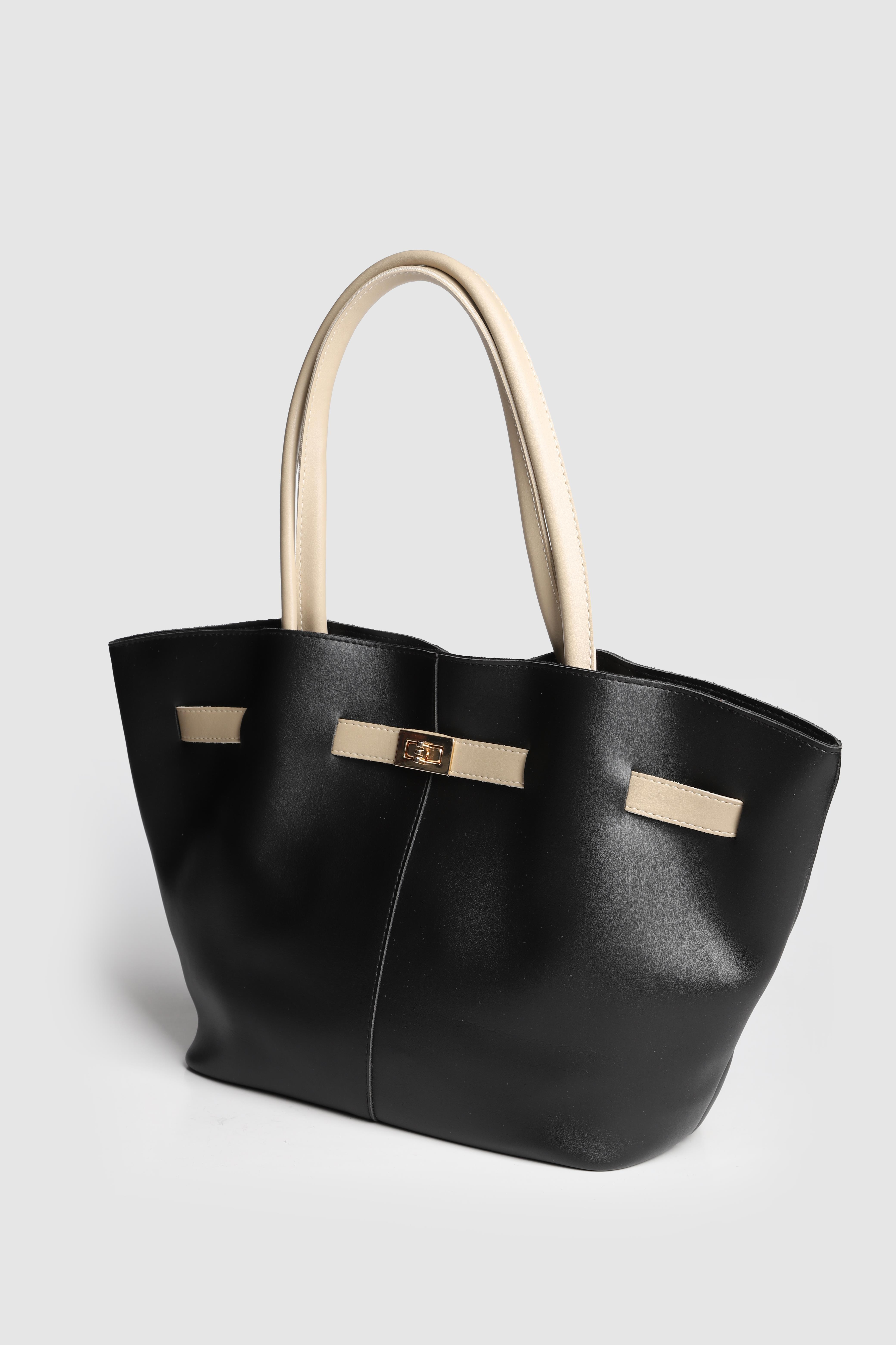 La'Graccio Paris Kadın Süet Deri Mıknatıs Kapamalı Kilit Detaylı El ve Omuz Çantası siyah Vizon (Lagraccio2377)