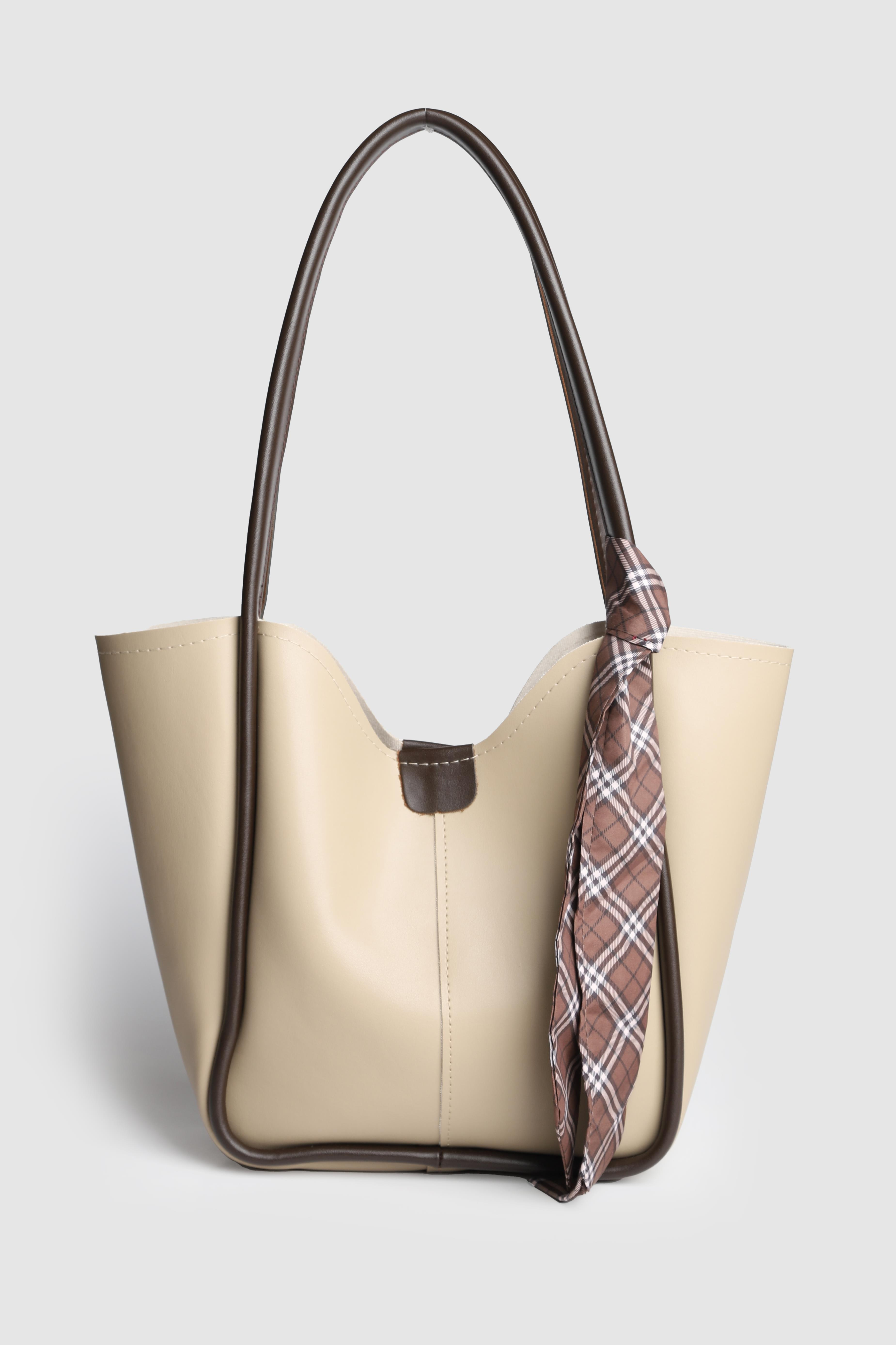 La'Graccio Paris Kadın Golden Fularlı Makyaj Çantalı Omuz Çantası Vizon Kahve (Lagraccio2313)