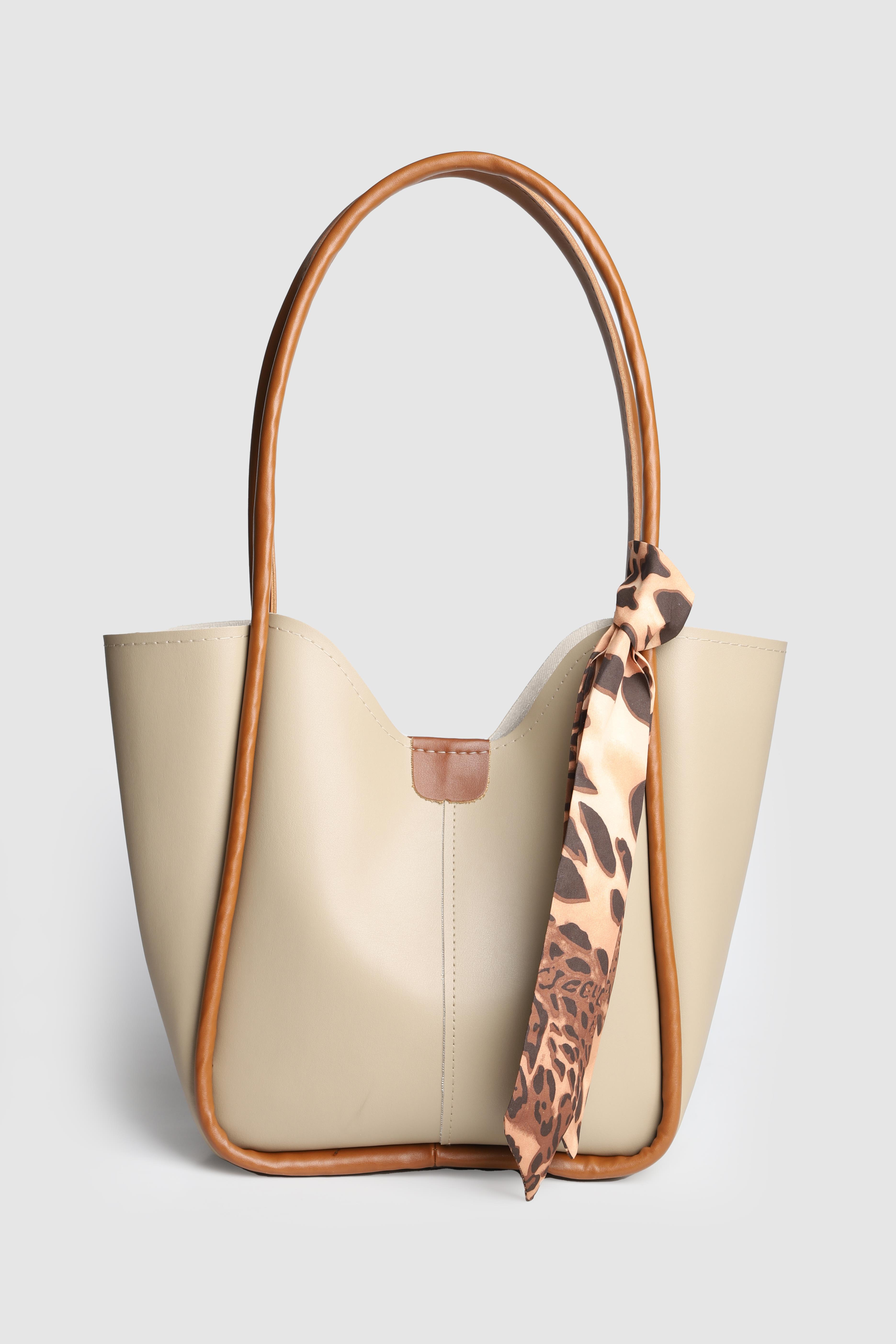 La'Graccio Paris Kadın Golden Fularlı Makyaj Çantalı Omuz Çantası Vizon Taba (Lagraccio2313)