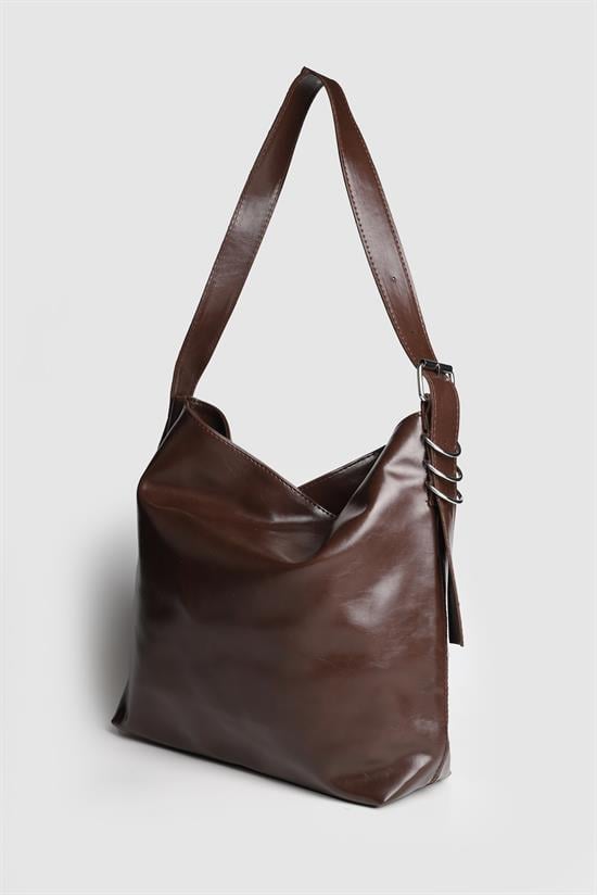 Lagraccio Paris Kadın Higgs Büyük Boy Kırışık Rugan Omuz Çantası Kahve