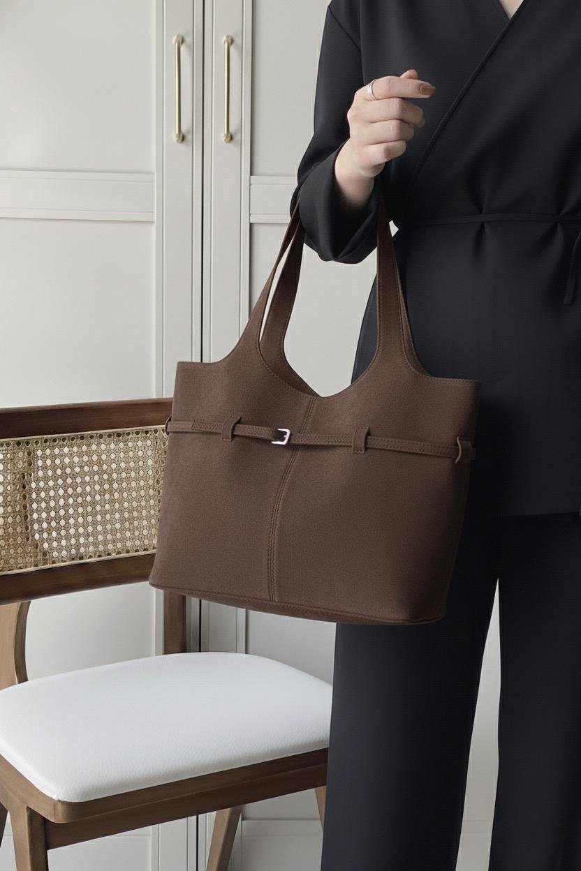 Lagraccio Paris Kadın Pureline Makyaj Çantalı Süet Büyük Boy Omuz Çantası Kahve Süet